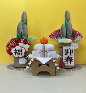 紙器事業部では、段ボールを活用した門松と鏡餅を制作いたしました。